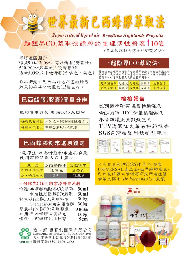 多樣性類黃酮(Propolis Flavonids),臨床效果也最好。高純度、高濃度、超高類黃酮、